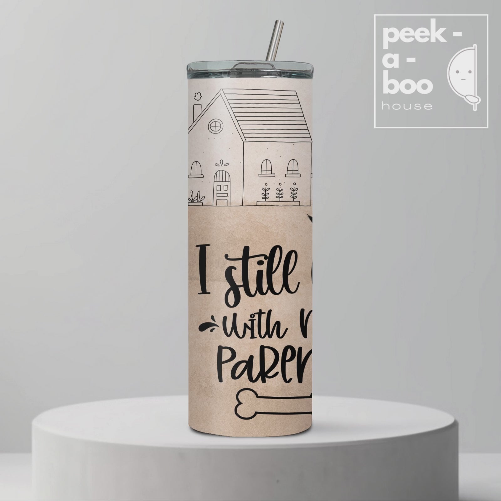 Discover the exquisite craftsmanship of Peek-a-boo House premium tumblers, lovingly designed for life's most precious moments. Perfect for birthdays, anniversaries, graduations, and other special occasions! These tumblers are expertly crafted from high-quality stainless steel and feature intricate sublimation printing. With a 20 oz. capacity, they keep your drink at the ideal temperature. Complete with a snap-fit lid and reusable metal straw, they combine practicality with style. Whether for daily use or special gifts, these tumblers elevate your experience and leave lasting impressions.